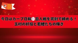 今日はカープ日和⚾️巨人戦を完封で締める!玉村の好投と若鯉たちの輝き(2025/9/23 広島東洋カープvs讀賣ジャイアンツ)