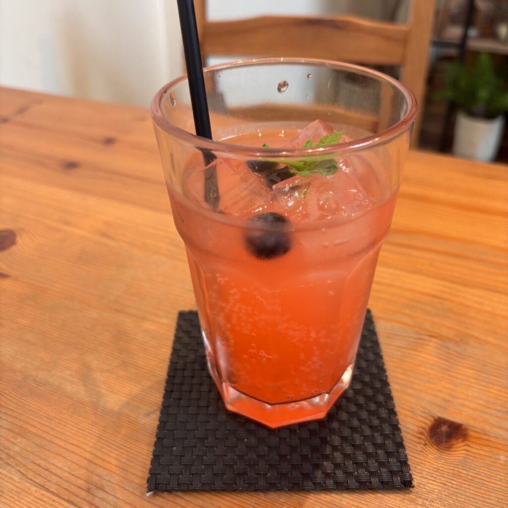 相方は頼んだドリンクはピンクグレープフルーツソーダ。ピンク色の見た目もかわいくて、気分が明るくなります。