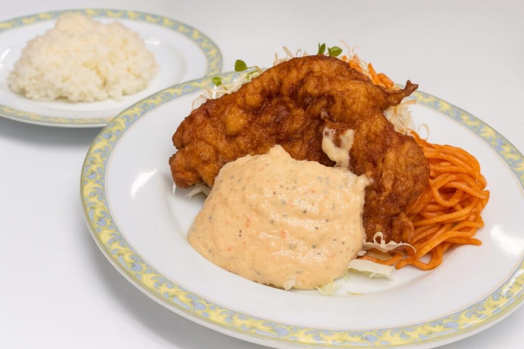 やっぱりこのタルタルソースと甘酢のバランスが絶妙で、最後まで飽きずに食べられます。鶏の胸肉ですがパサつきがないのもいいですね。