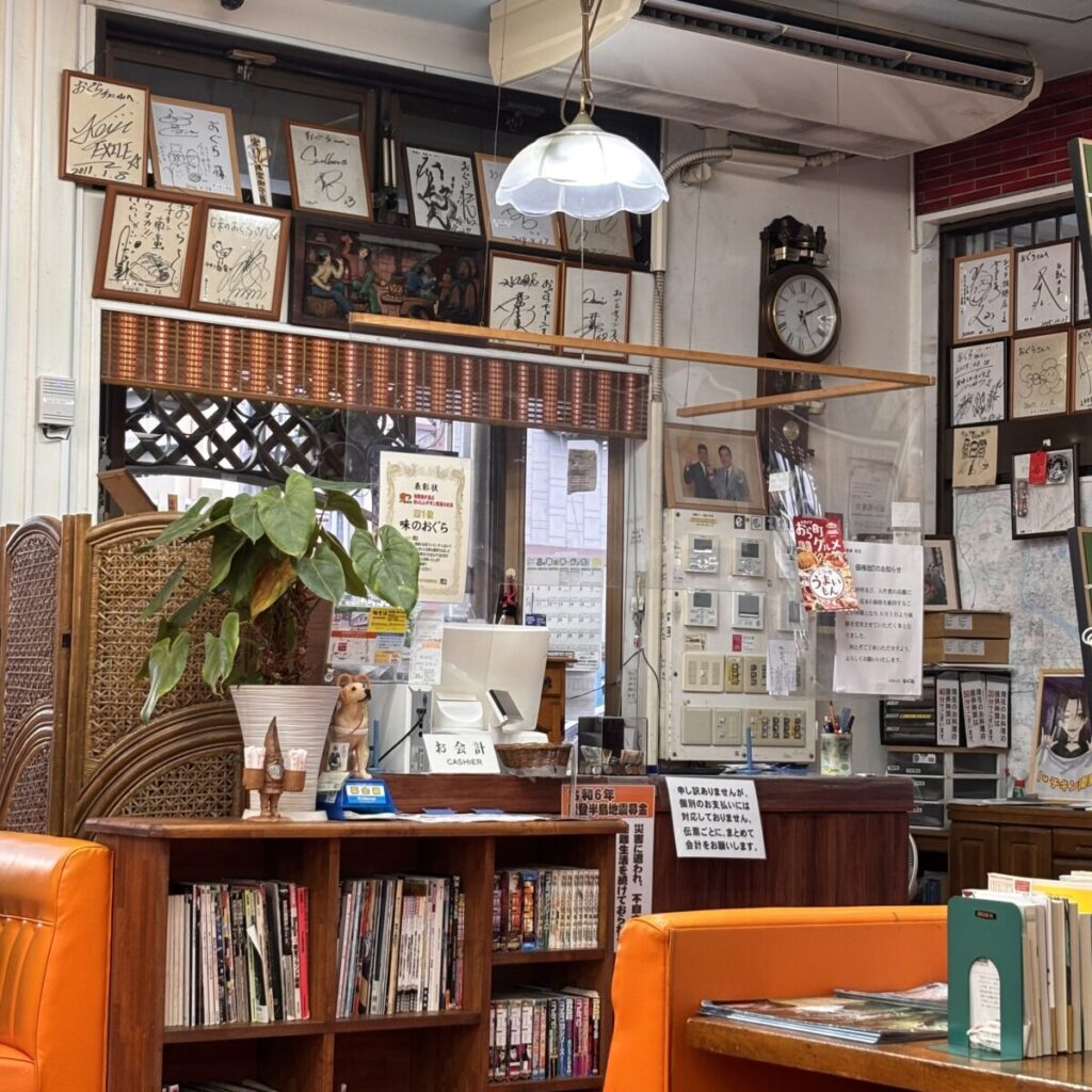 店内は昭和レトロな雰囲気がそのまま残っていて、壁には有名人のサインがずらり。