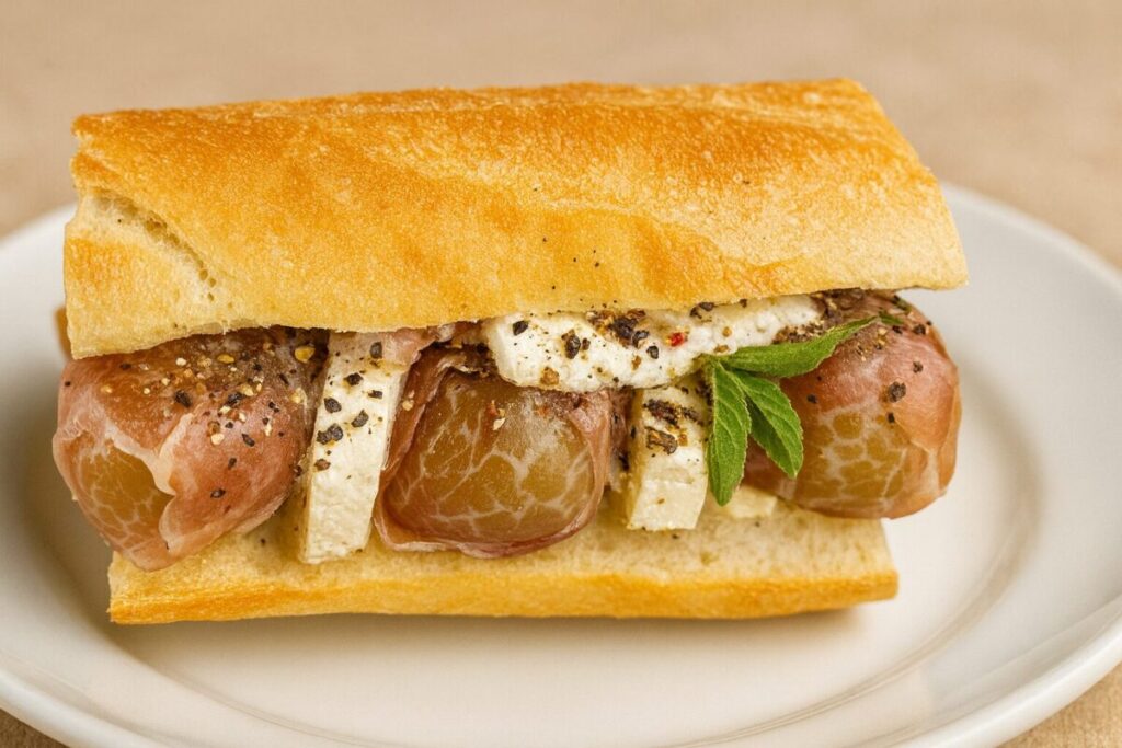 生ハムボールとカプレーゼはバジルソースの味と生ハムのマッチングがたまりません。ボールの中にはジューシーなマスカットが入っていて、これも本当に美味しい。