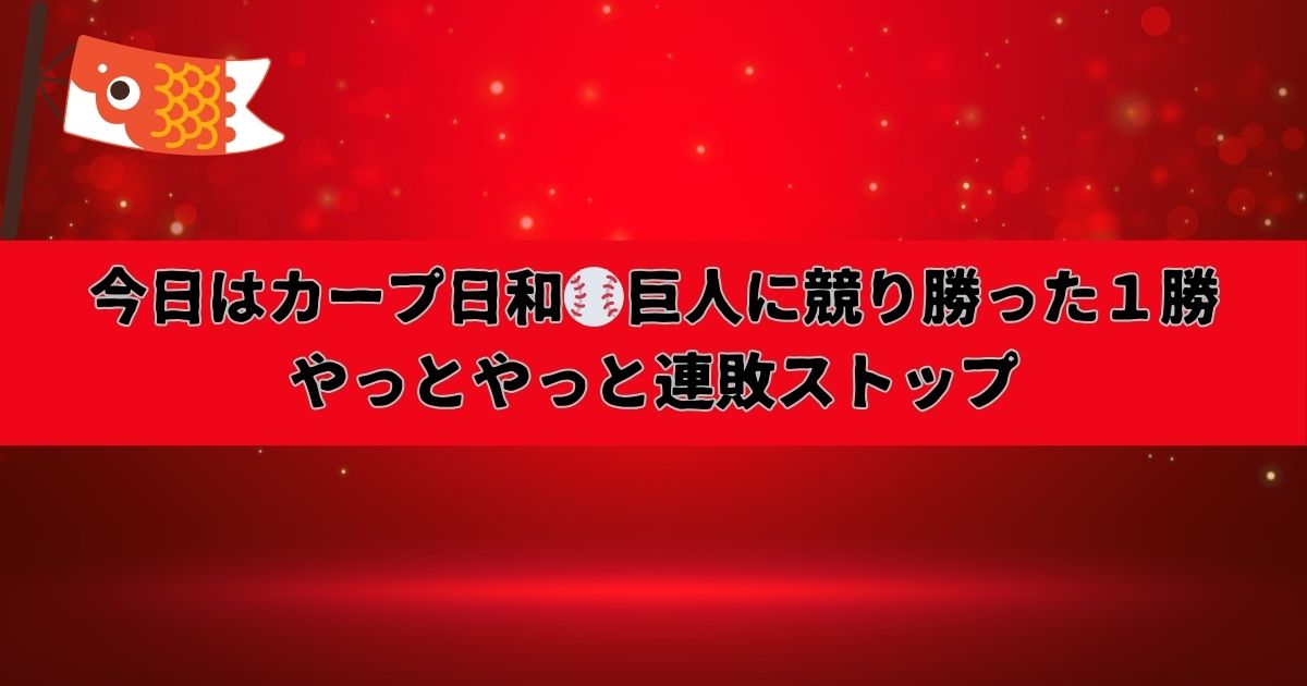 連敗を止めてくれた今日の勝利は大きいです。やっぱりカープは「つなぎの野球」と「一発の力」、この両輪がそろったときに強いですね。