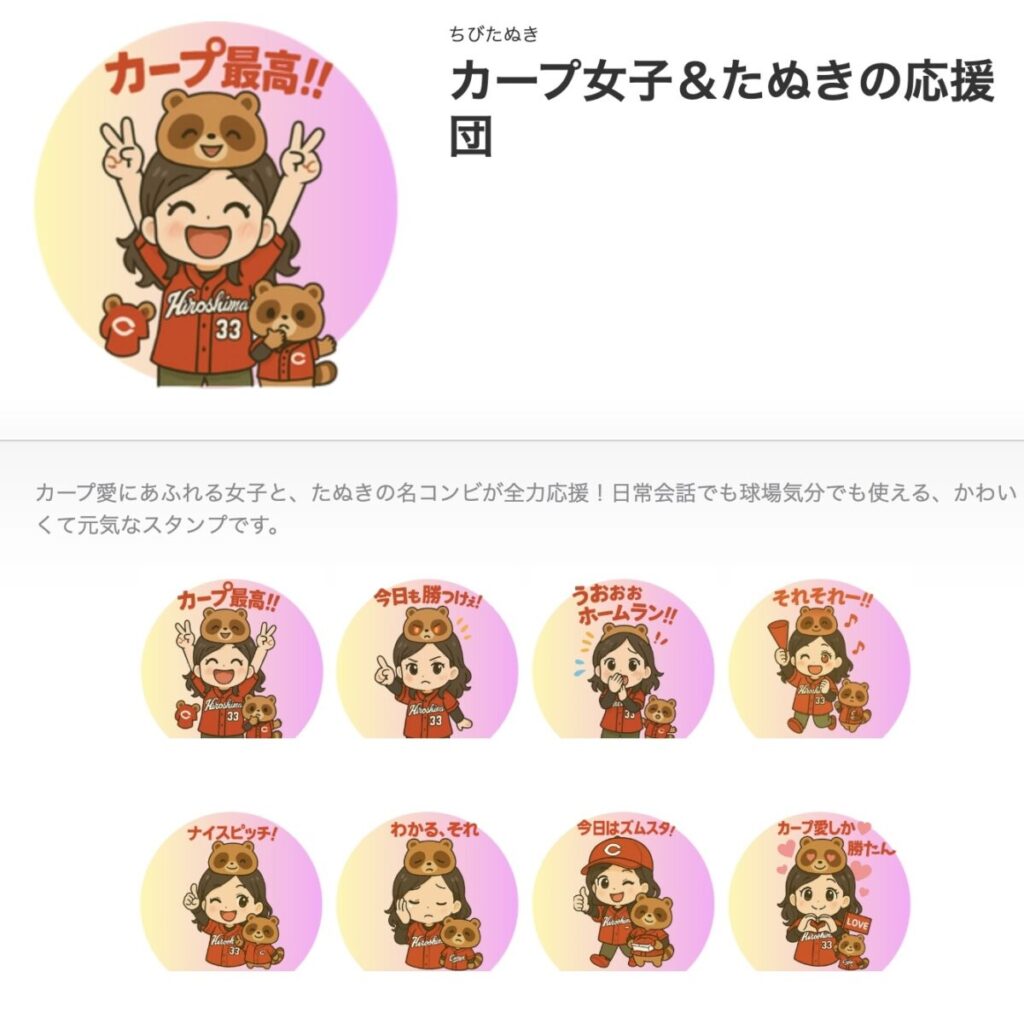 前回つくったのは、真っ赤なユニフォーム姿の“カープ女子スタンプ”。