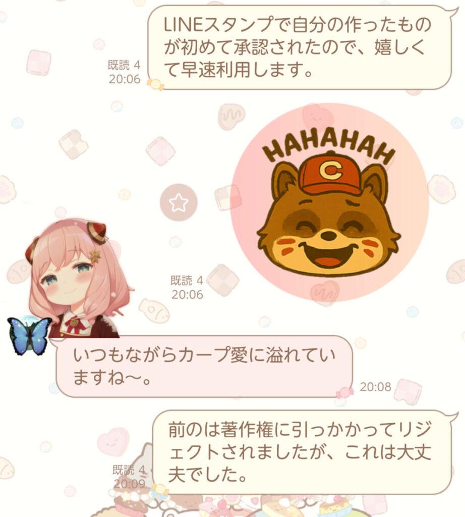 あの「リジェクトされたカープ女子スタンプ」からのリベンジです。